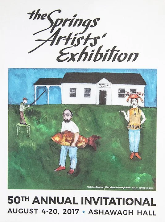 Exhibition poster for the 2017 Springs Artists’ Exhibition featuring artwork by Gabriele Raacke.