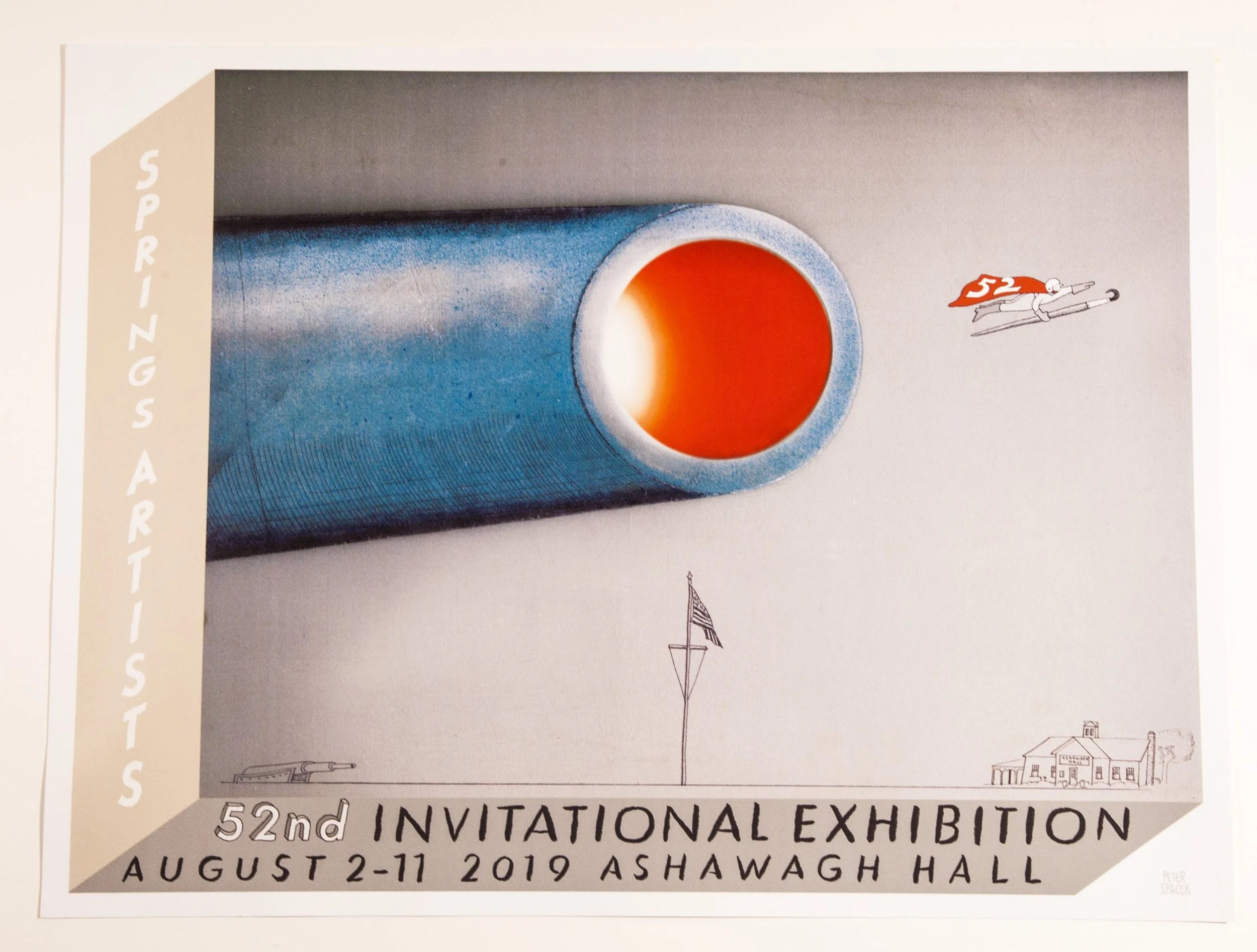 Exhibition poster for the 2019 Springs Artists’ Exhibition featuring artwork by Peter Spacek.